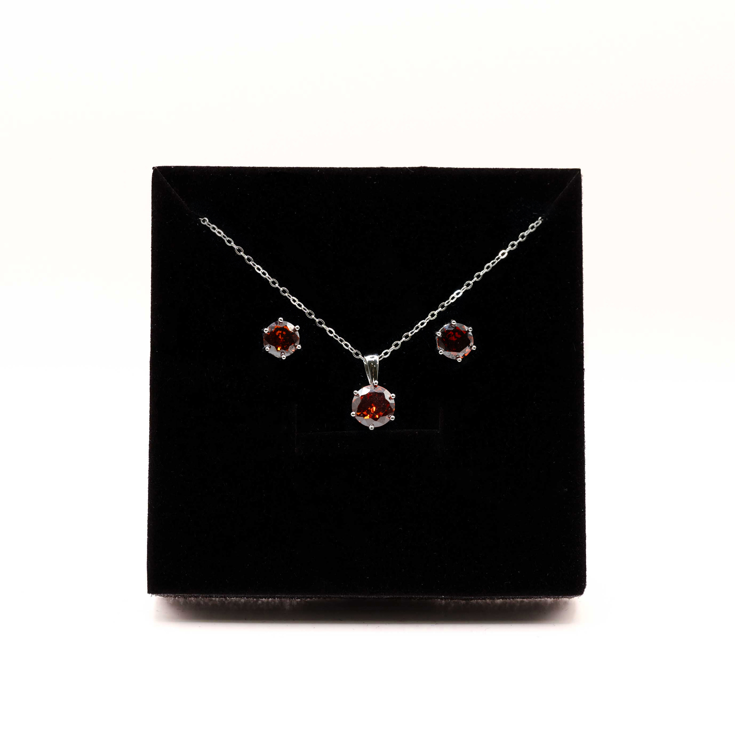 Juego de colgante y pendiente: Plata de Ley 925 rodiada con circonitas granate