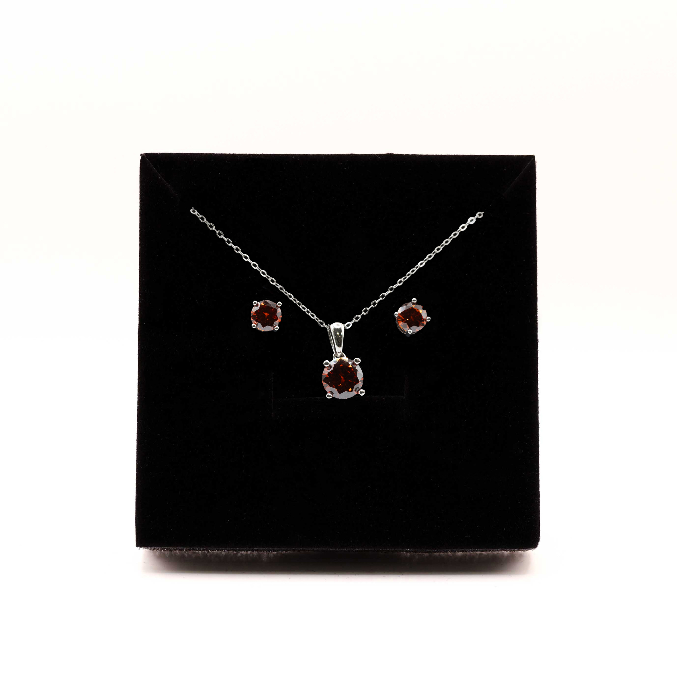 Juego de colgante y pendiente: Plata de Ley 925 rodiada con circonitas granate
